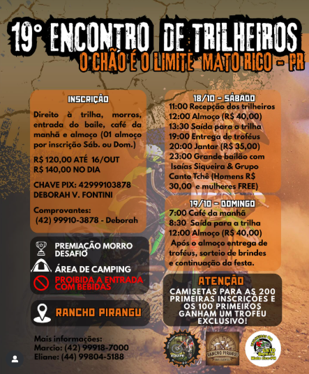 Ao lado dela, a equipe Os Gatos do Mato – da qual os quatro rapazes que estiveram em Portugal fazem parte – também estará colaborando com a realização deste grande evento, reforçando a união e a força dos trilheiros de Mato Rico.