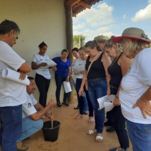 No período da tarde, os produtores se deslocaram até o Centro de Produção Nelson Sória, para a realização de atividades práticas na elaboração de fertilizantes e caldas naturais, permitidas para a atividade de produção orgânica.